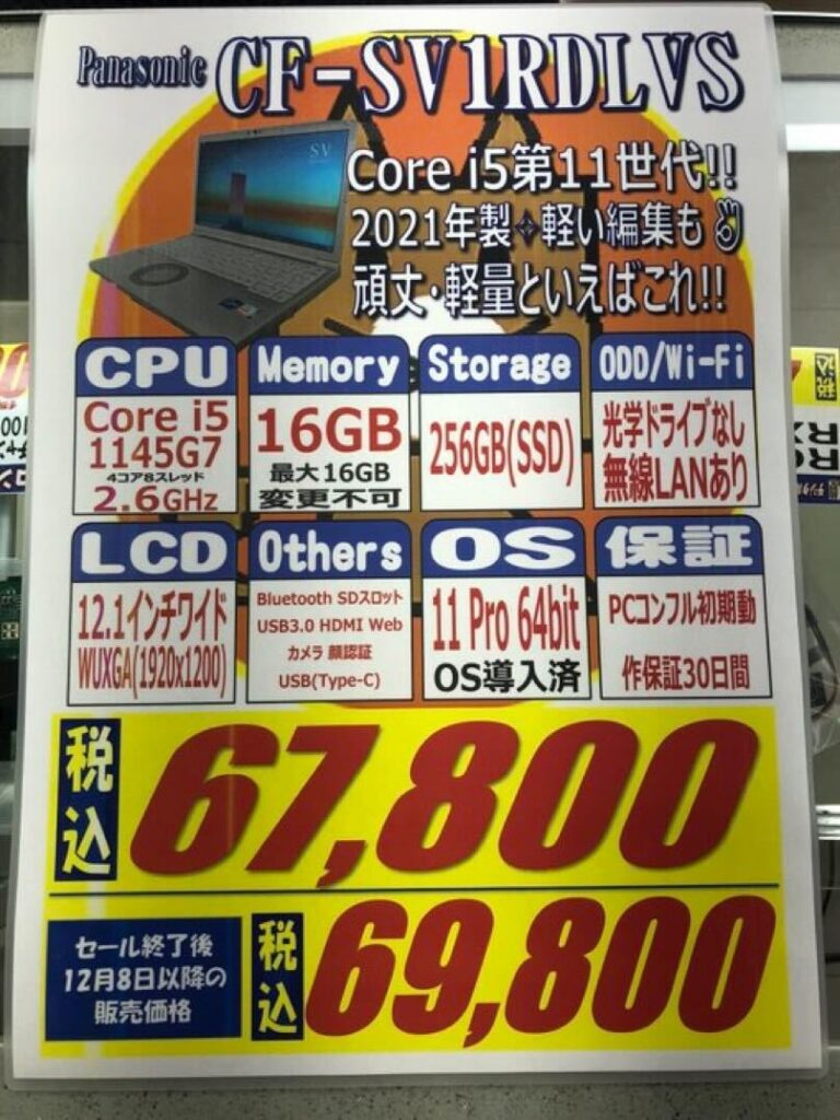 第8世代Core i5搭載、8GB / 256GB SSD、12.1インチワイドWUXGA、Windows 11 Proという構成のPanasonic製ノートPCが17,800円など、今週もお買い得品多数。