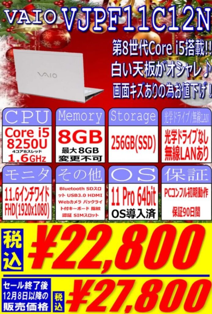 第8世代Core i5搭載、 8GB / 256GB SSD、11.6インチワイドFHD、Windows11 proという構成で22,800円です。