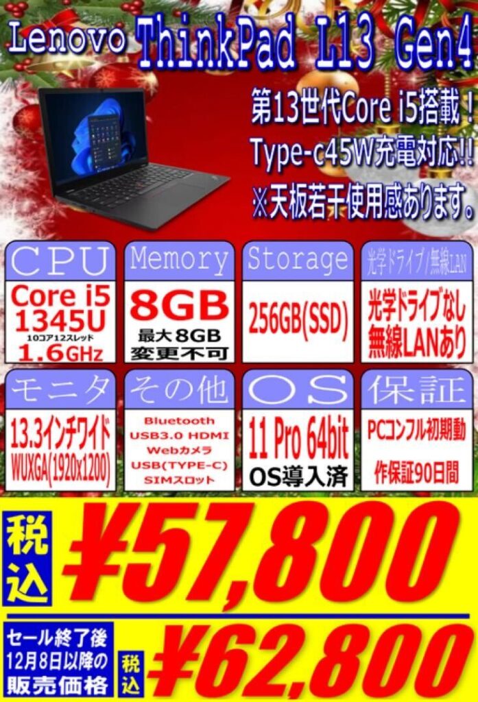 Lenovo「ThinkPad L13 Gen4」 税込57,800円