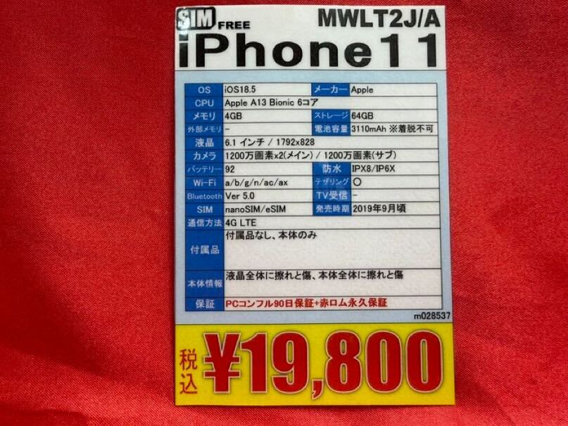 Apple A13 Bionic搭載、4GB / 64GB SSD、6.1インチ SIMフリーという構成で19,800円です。
