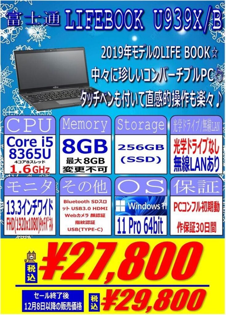 富士通「 LIFEBOOK U939X/B 」税込27,800円