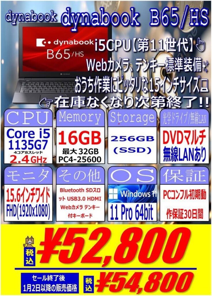 第11世代 i5搭載、16GB / 256GB SSD、15.6インチワイドFHD、Windows 11 proという構成で52,800円です。
