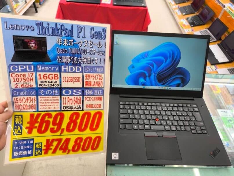 Lenovo「ThinkPad P1 Gen 3」税込69,800円