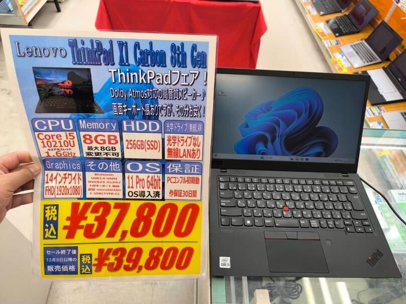Lenovo「ThinkPad X1 Carbon 8th Gen」税込37,800円