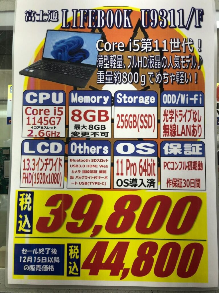 富士通「LIFEBOOK U9311/F」 税込39,800円