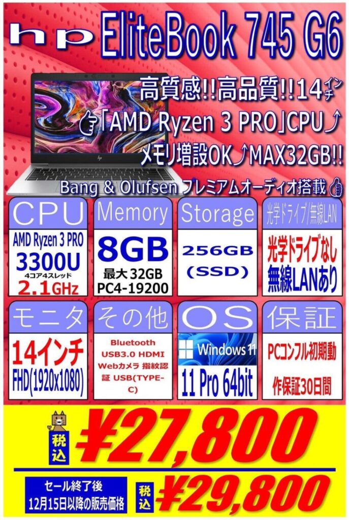 HP「EliteBook 745 G6」 税込27,800円