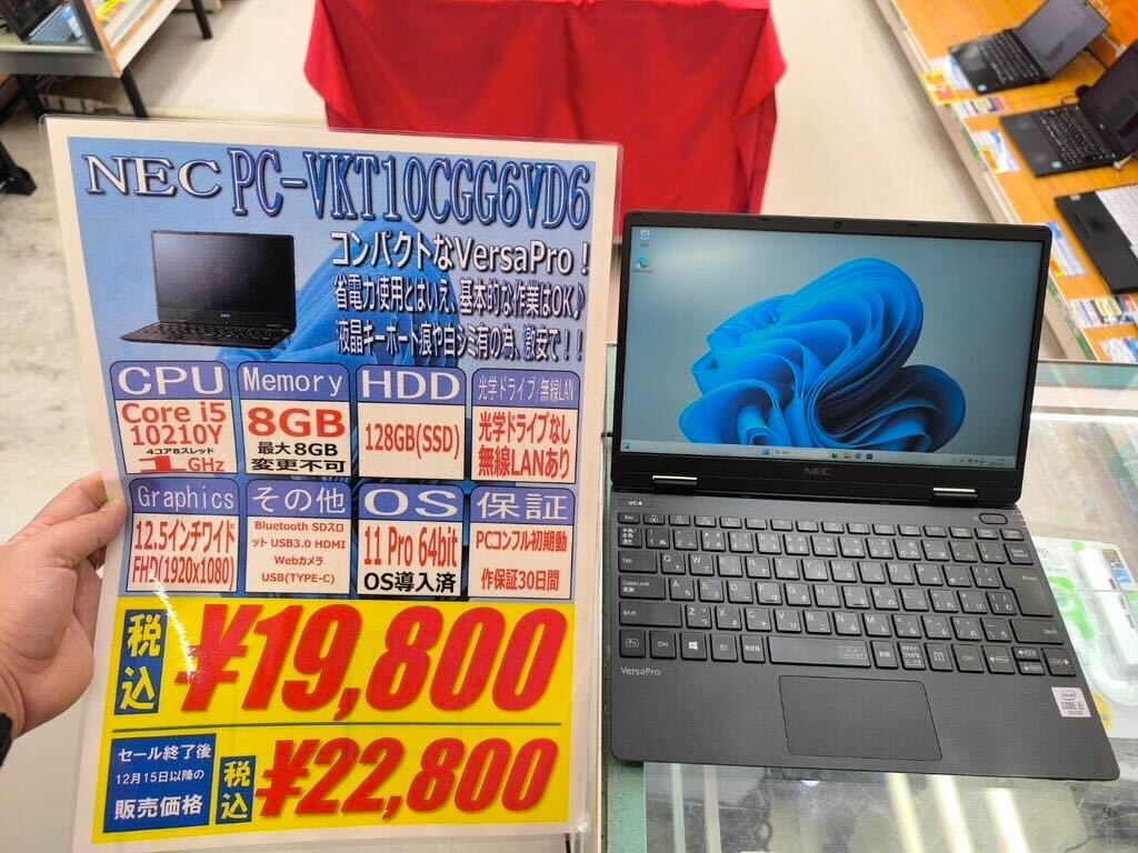 第10世代Core i5搭載、8GB / 128GB SSD、12.5インチワイドFHD、Windows 11 proという構成で19,800円です。