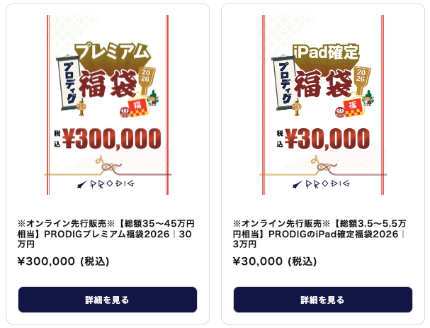 PRODIGでは、今回10種類以上の福袋を販売します。