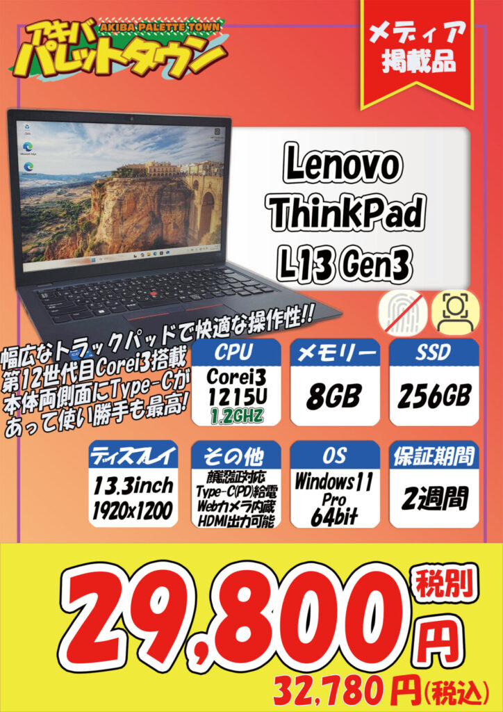 Lenovo「ThinkPad L13 Gen3」税込32,780円