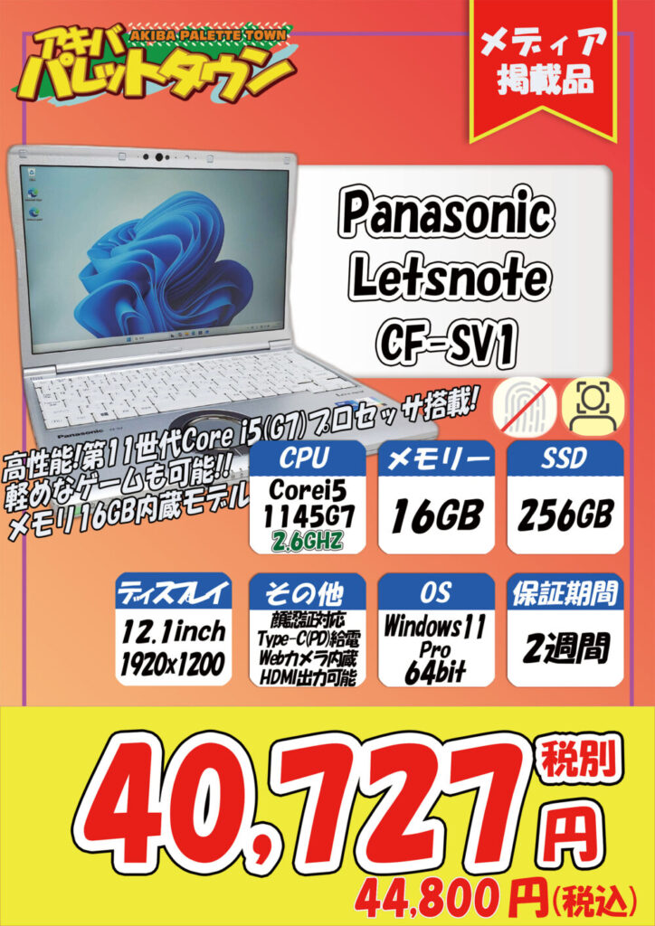 Panasonic「Let’s note CF-SV1」税込44,800円