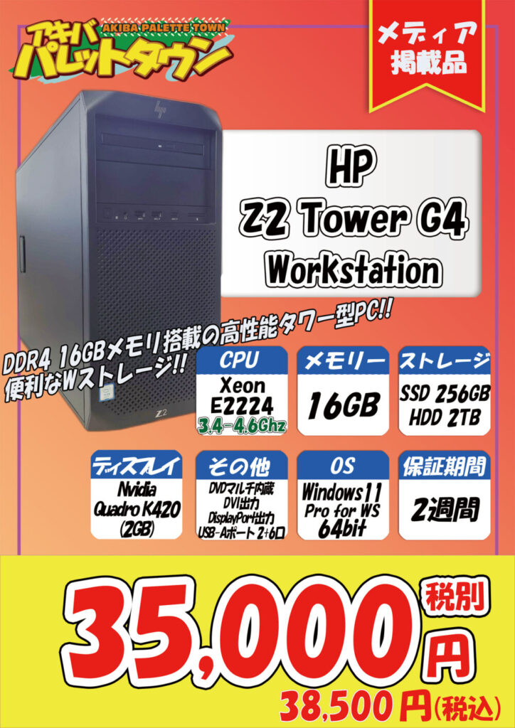 HP「Z2 Tower G4 Workstation」税込38,500円
