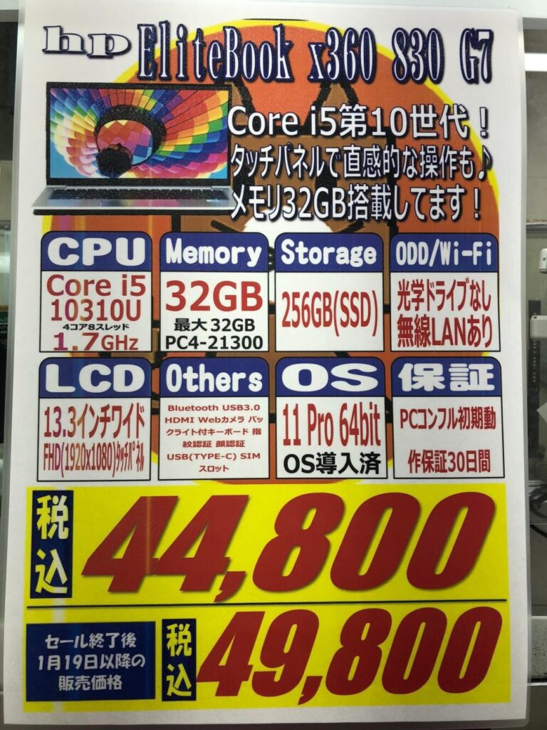 HP「EliteBook x360 830 G7」 税込44,800円