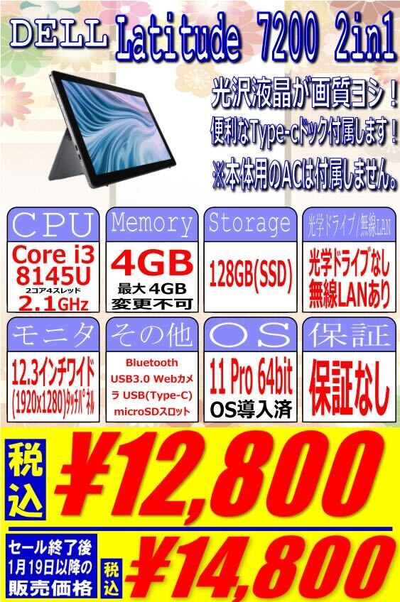 Dell「Latitude 7200 2in1」(保証なし) 税込12,800円