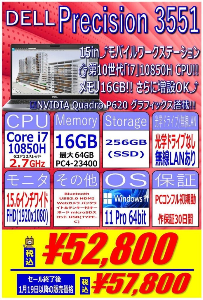 Dell「Precision 3551」税込52,800円