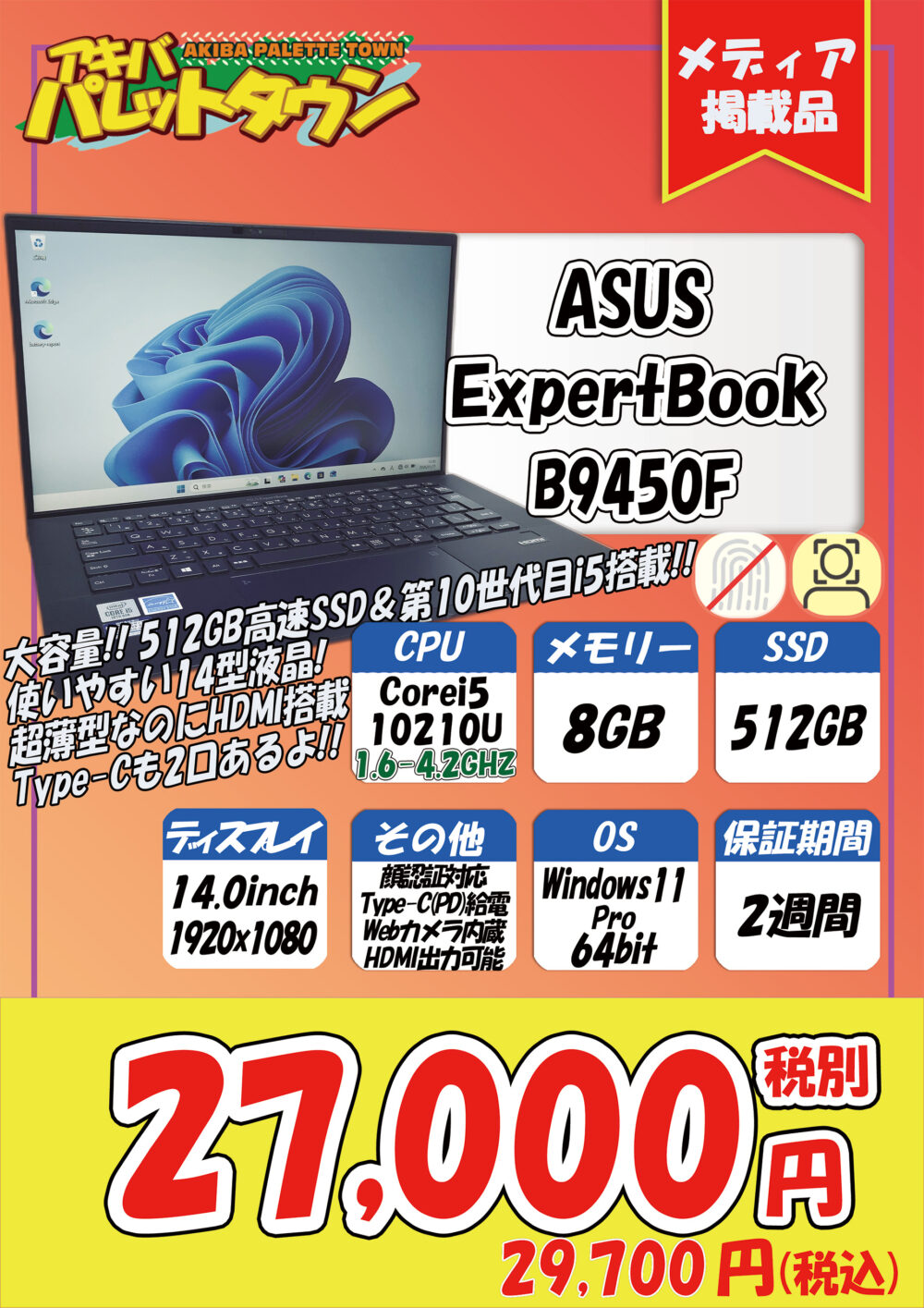 ASUS「ExpertBook B9450F」税込29,700円