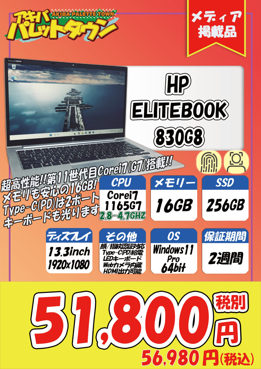HP「Elitebook 830 G8」税込56,980円