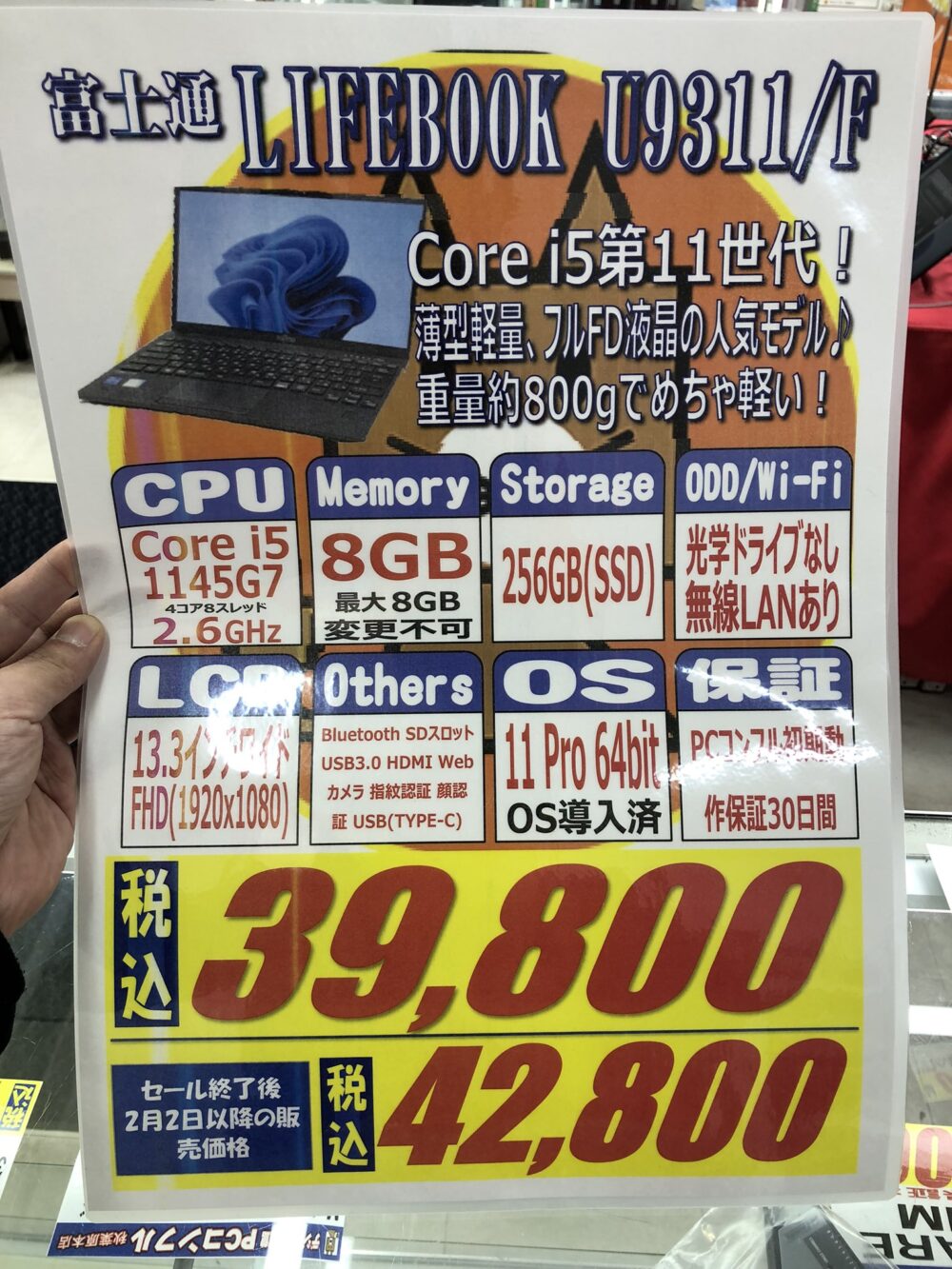 富士通「LIFEBOOK U9311/F」 税込39,800円