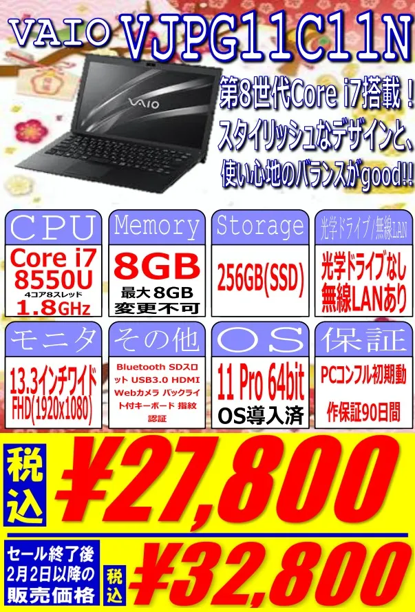 VAIO「VJPG11C11N」 税込27,800円