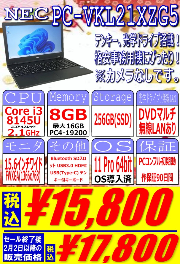 NEC 「PC-VKL21XZG5」税込15,800円