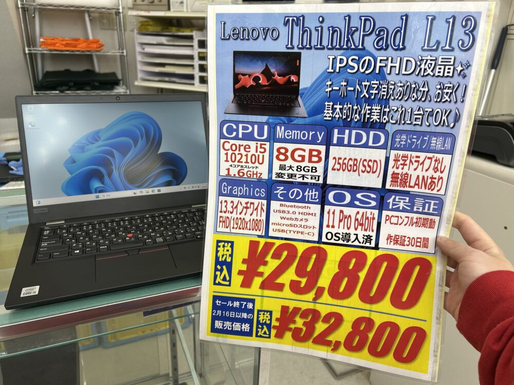 Lenovo「ThinkPad L13」税込29,800円