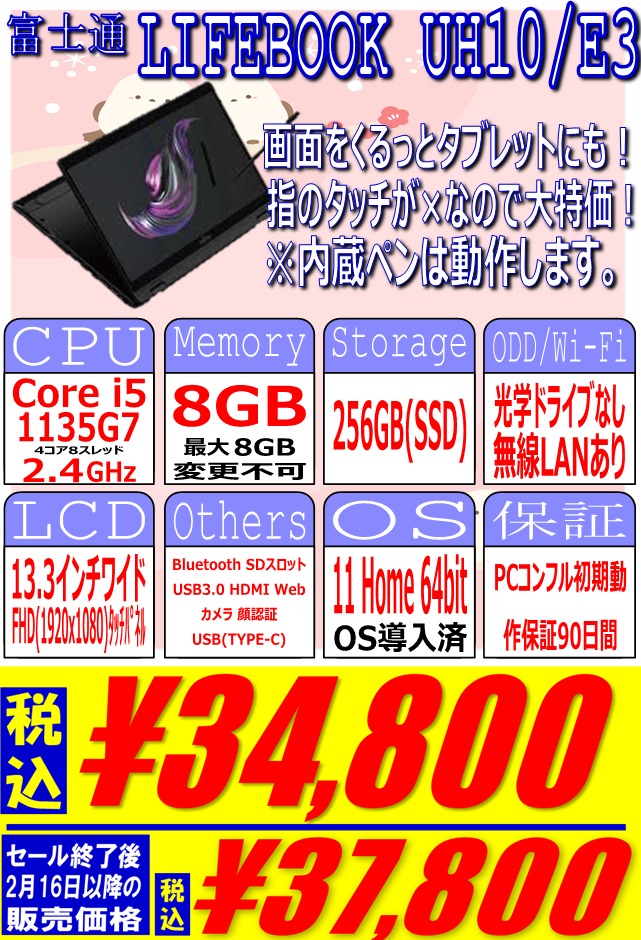 富士通 「LIFEBOOK UH10/E3」税込34,800円