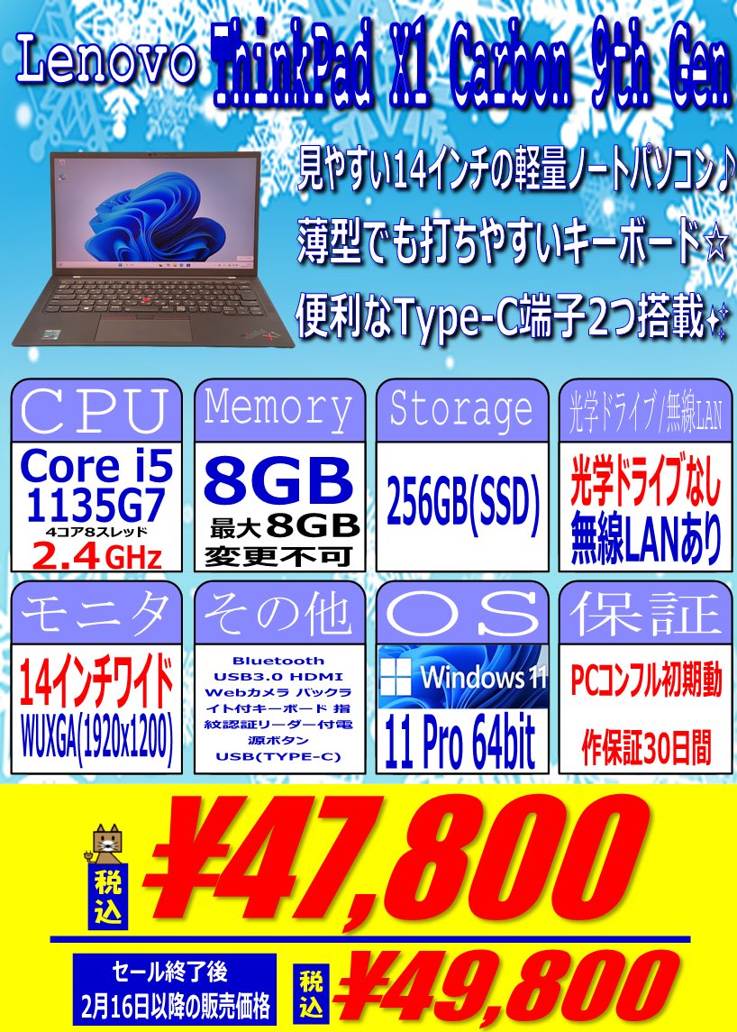 Lenovo「ThinkPad X1」税込47,800円