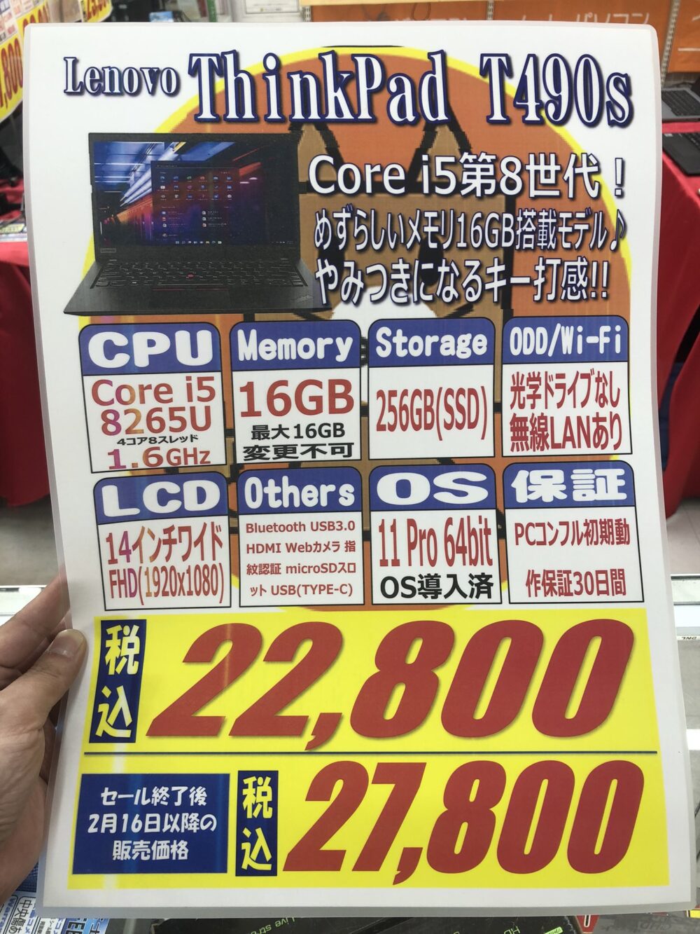 Lenovo「ThinkPad T490s」 税込22,800円
