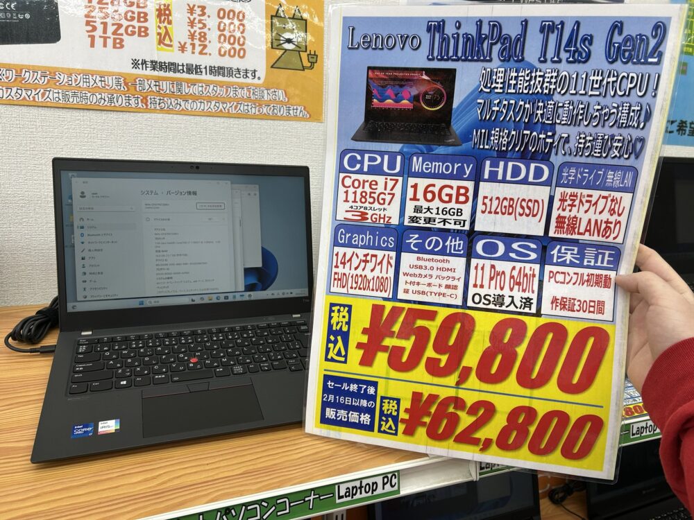Lenovo「ThinkPad T14s Gen2」税込59,800円