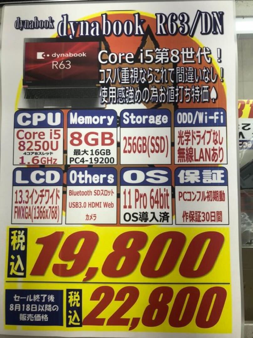 東芝「dynabook R63/DN」税込19,800円
