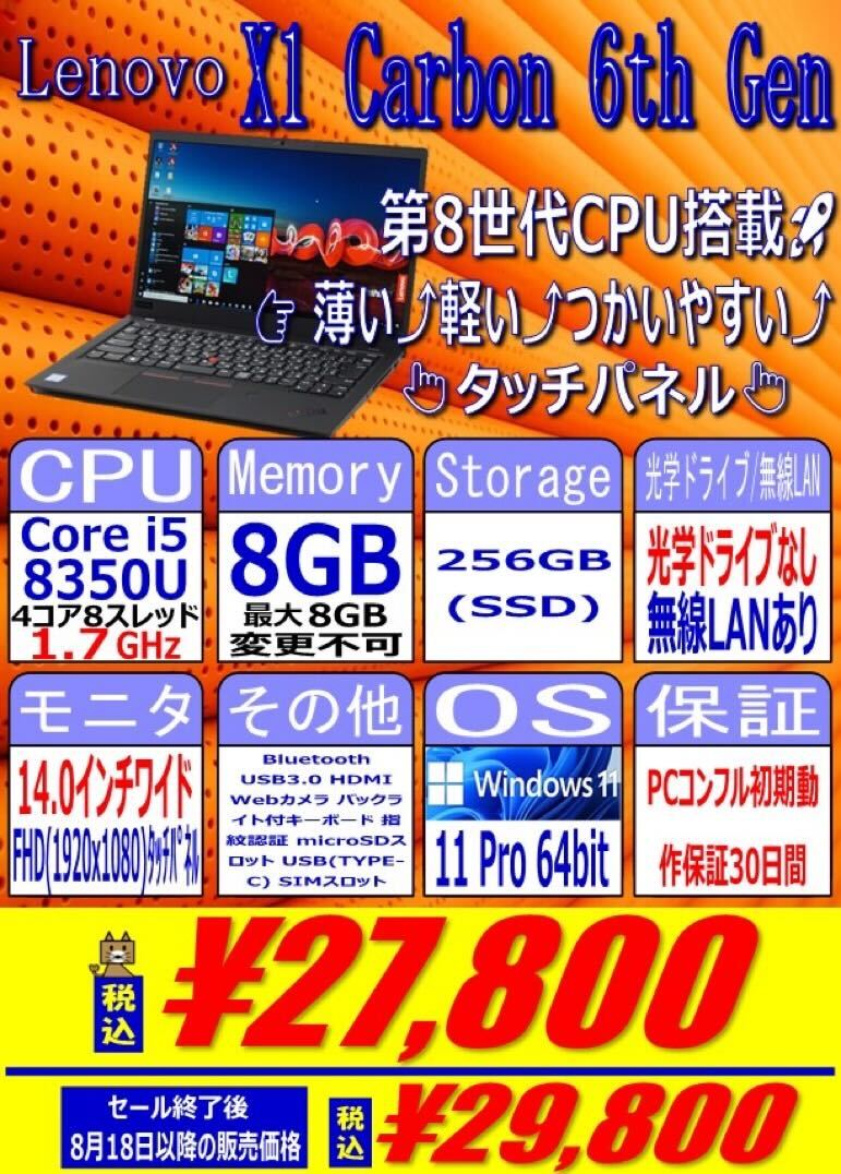 Lenovo「ThinkPad X1 Carbon 6th Gen」税込27,800円