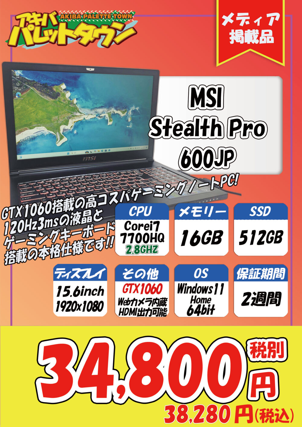 MSI 「Stealth Pro 600JP」税込38,280円