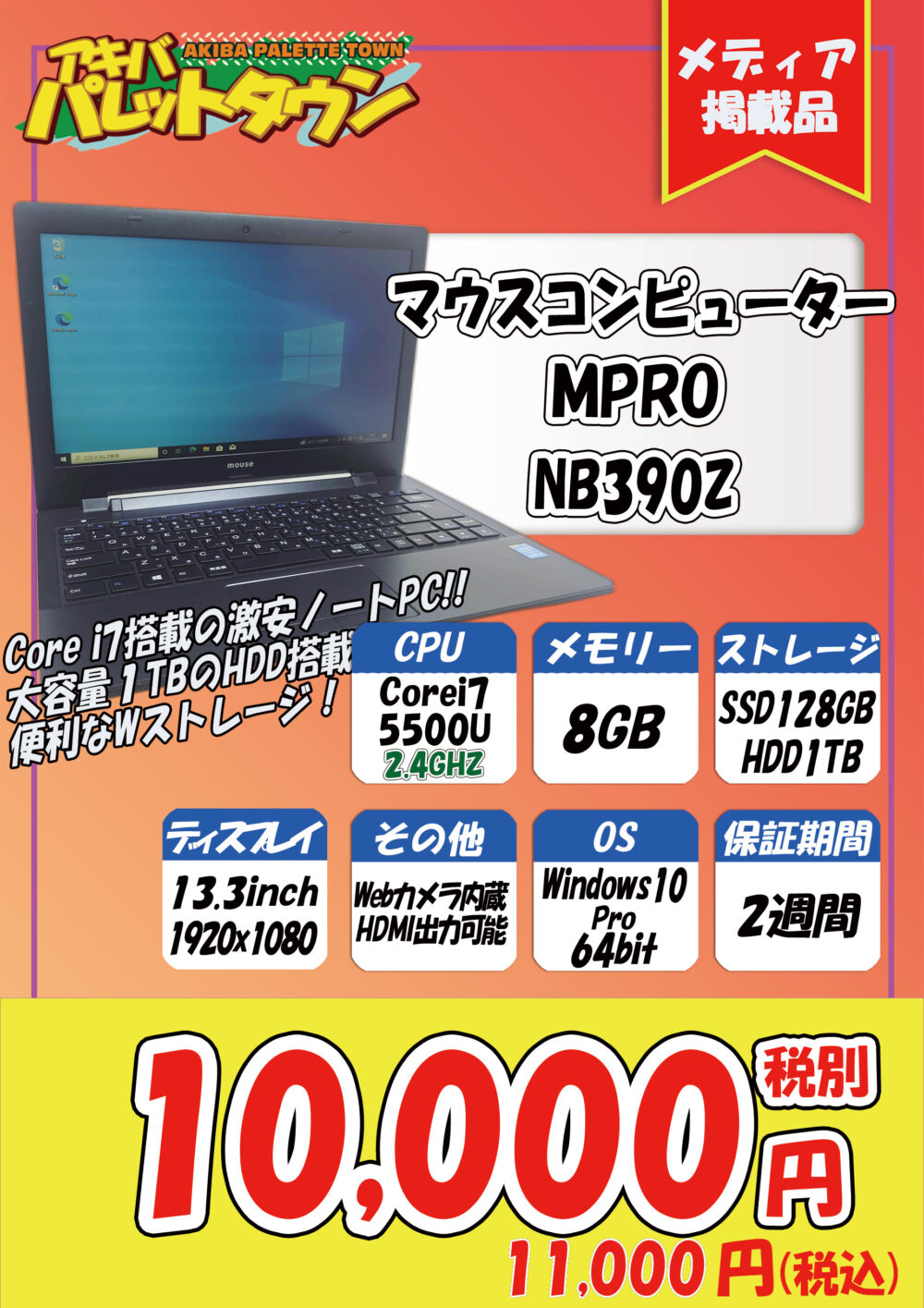 マウスコンピューター 「MPro NB3902」 税込11,000円