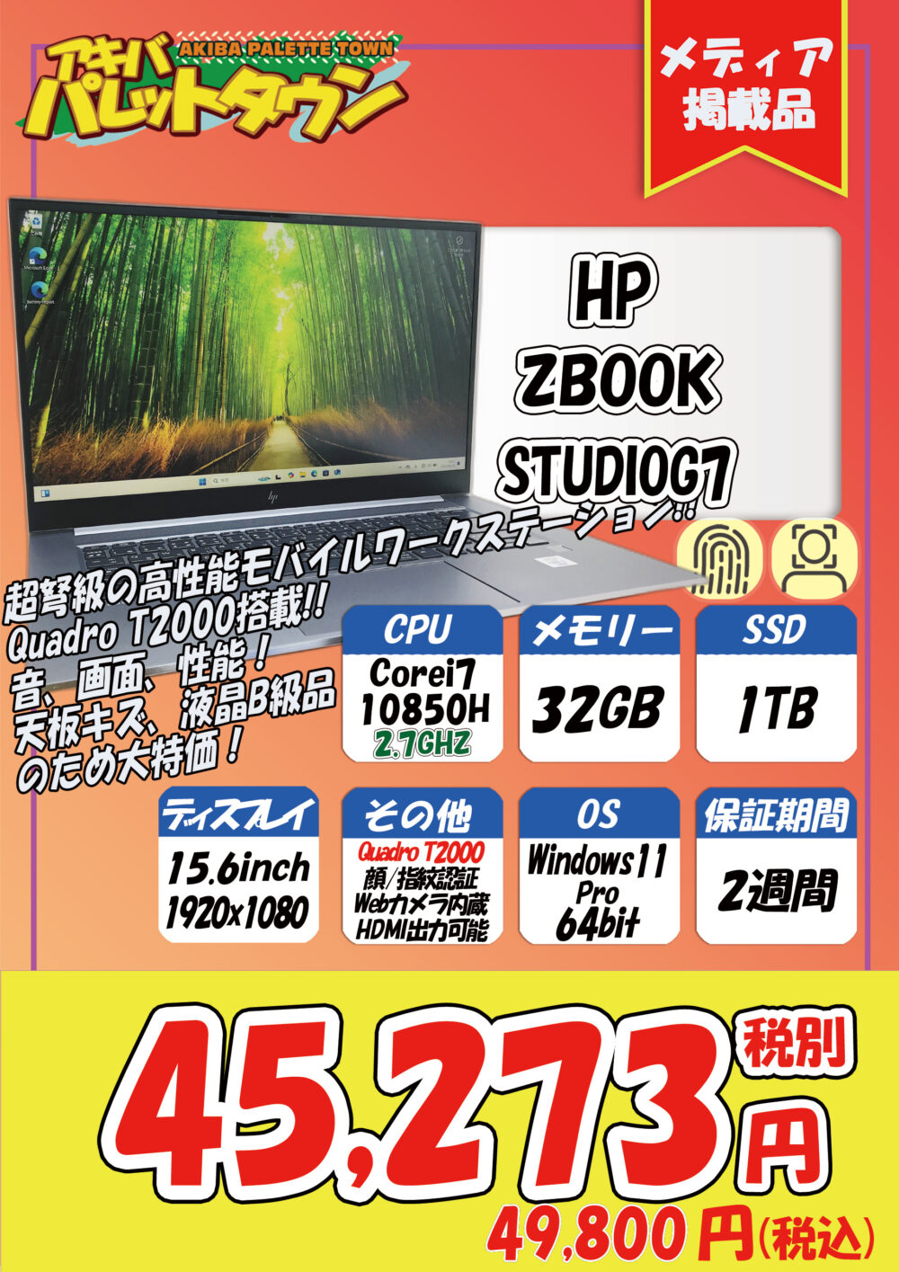 HP「ZBOOK STUDIO G7」税込49,800円