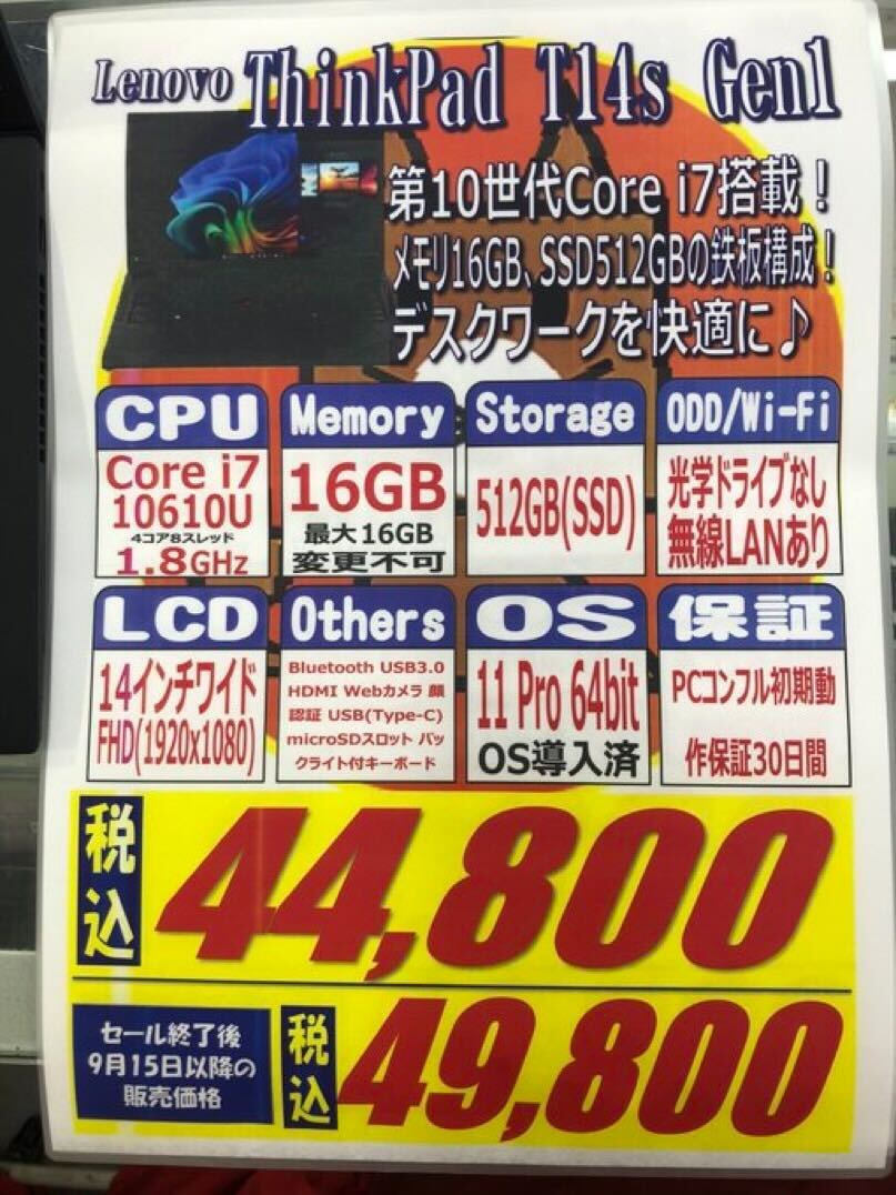 Lenovo「ThinkPad T14s Gen1」税込44,800円