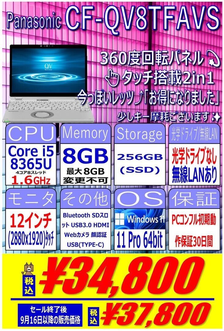 パナソニック「Let’s note CF-QV8TFAVS」 税込34,800円