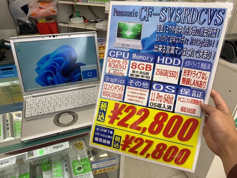 第8世代Core i5搭載、8GB / 256GB SSD、12.1インチワイドWUXGA、Windows 11 proという構成で22,800円です。