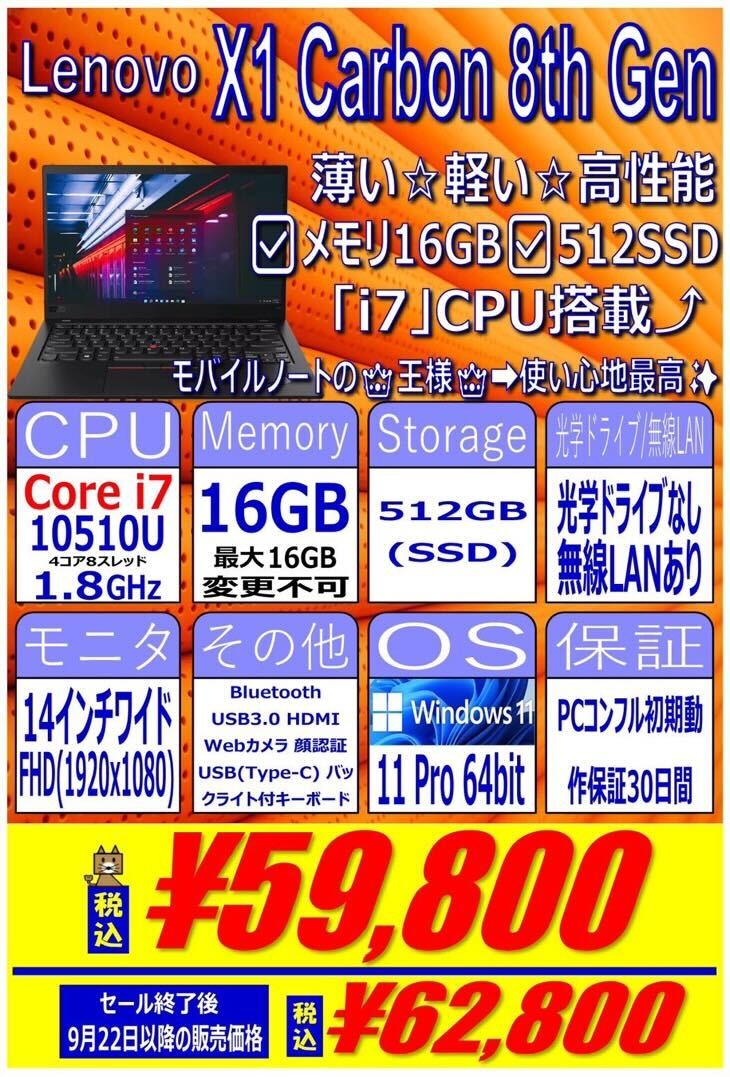 Lenovo「ThinkPad X1 Carbon 8th Gen」税込59,800円