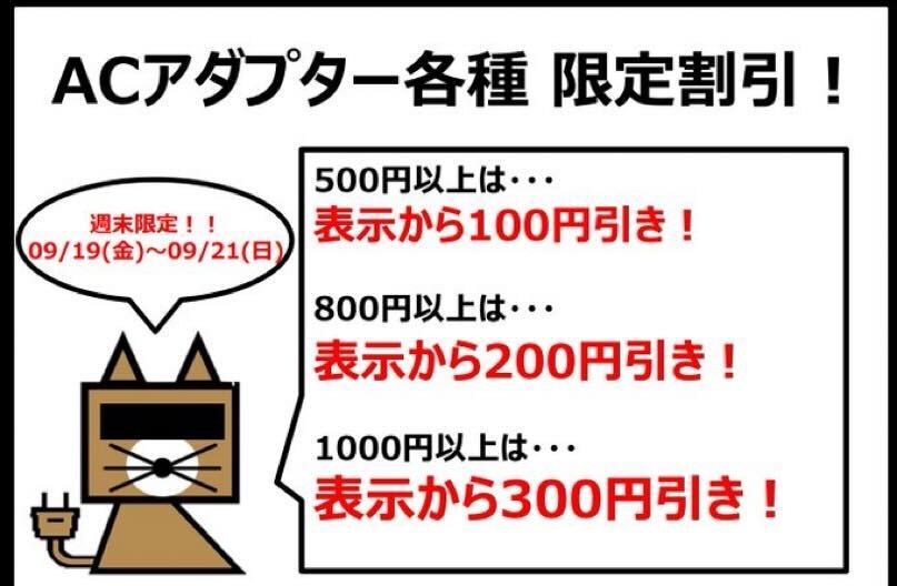 今週はパソコン用ACアダプターが大量に入荷され、大特価セールを開催するとのことです。