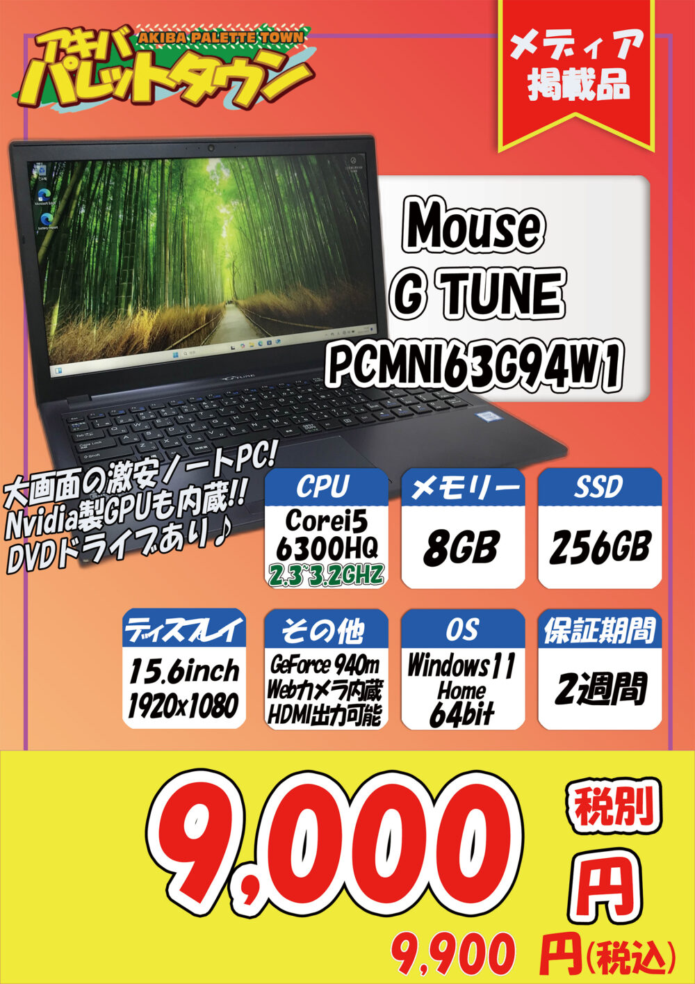 Mouse「G TUNE pcmni63g94w1h16c」税込9,900円