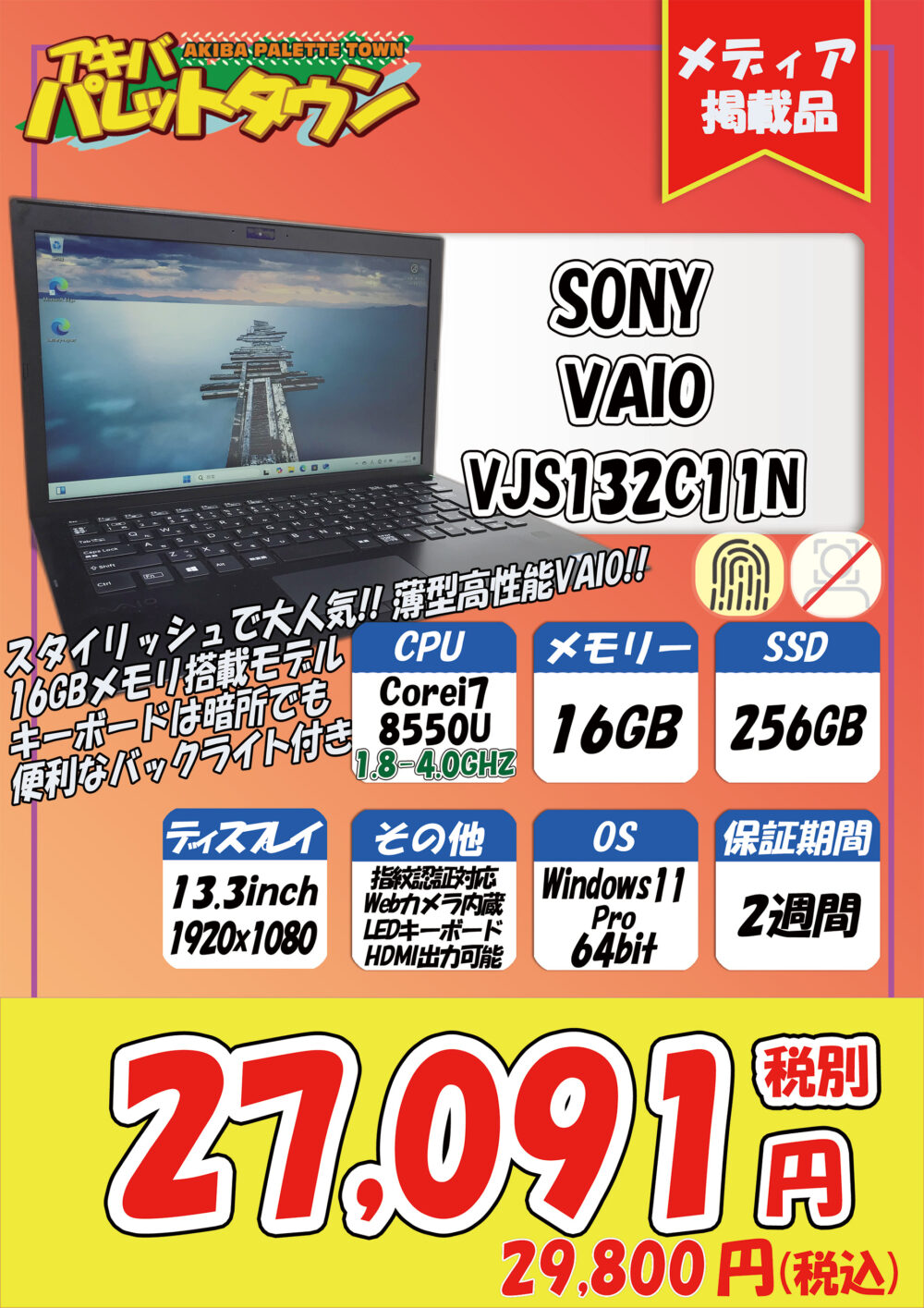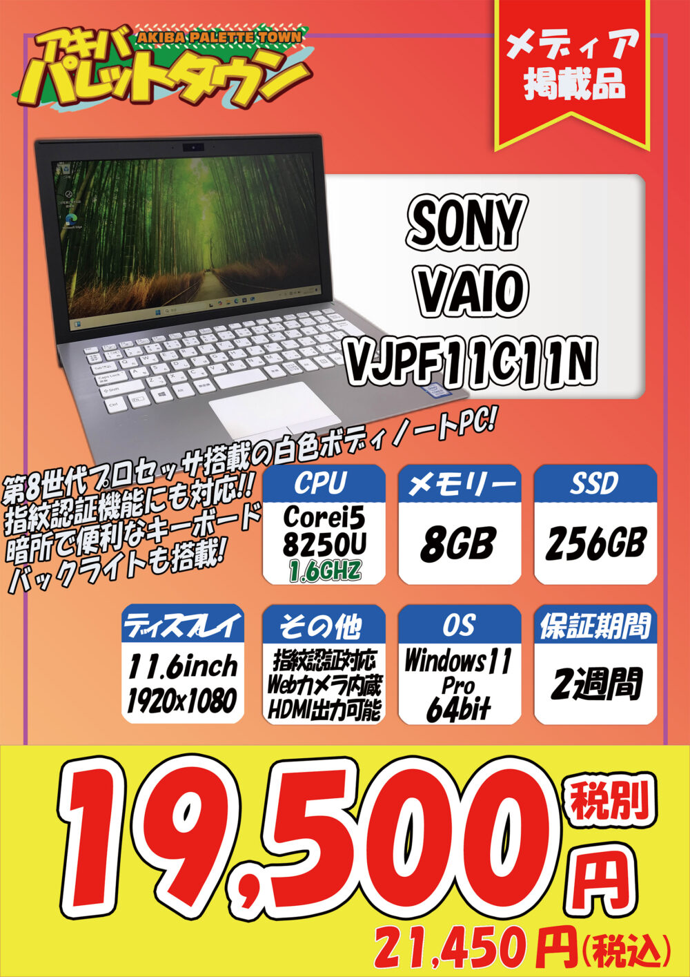 第8世代Core i5搭載、8/256GB SSD、11.6インチ、Windows 11 Proという構成でSONY製ノートPCが21,450円など、これ以外にも多数の特価品が出ています。