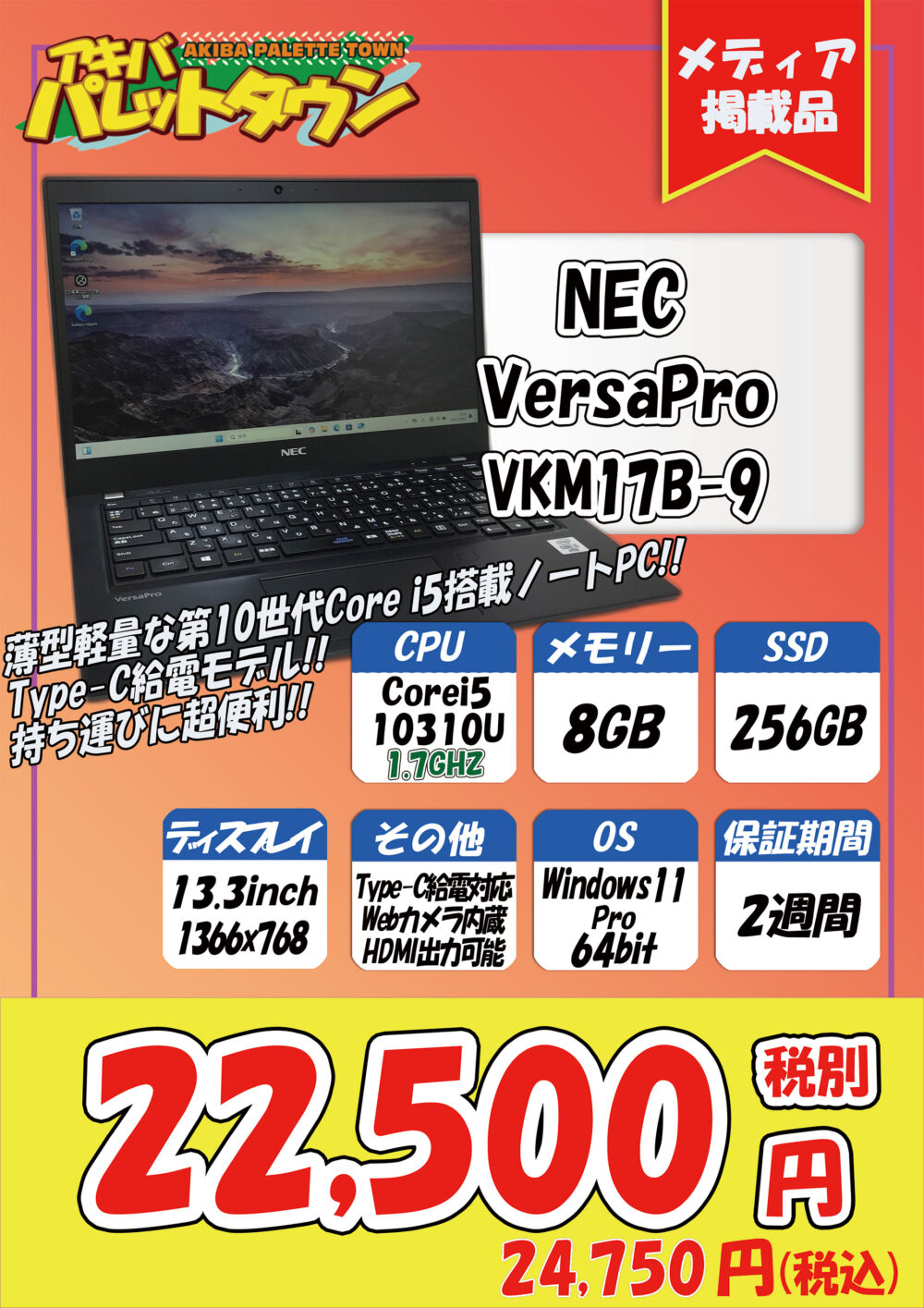 NEC「VersaPro VKM17B-9 」税込24,750円