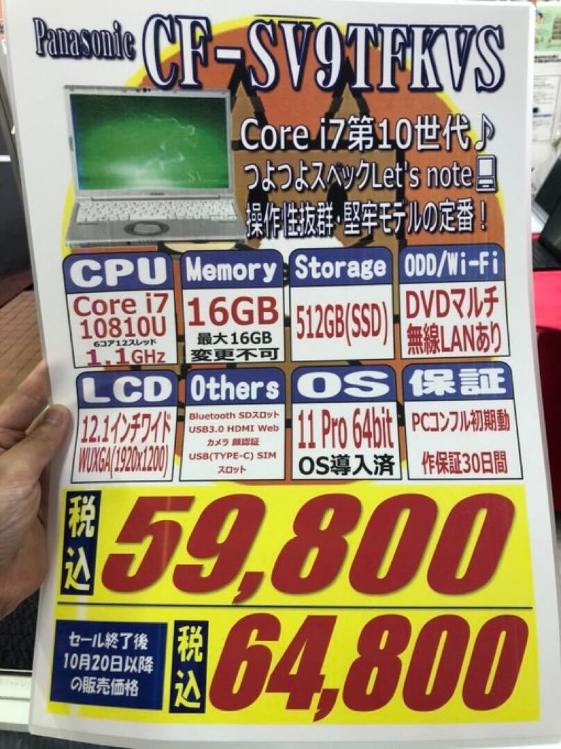Panasonic「CF-SV9TFKVS」税込59,800円