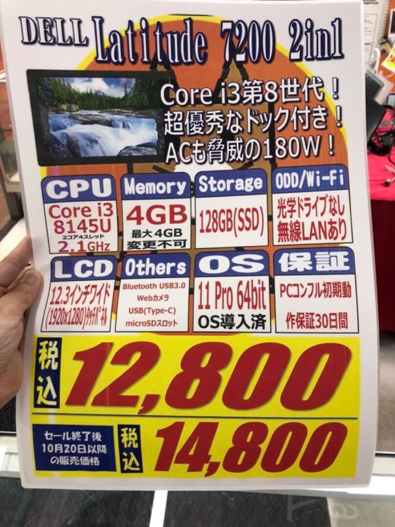 第8世代Core i3搭載、4GB / 128GB SSD、12.3インチワイドタッチパネル、Windows 11 proという構成で12,800円です。