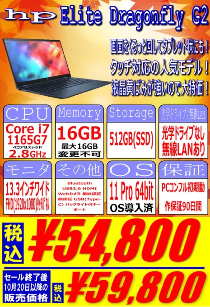 第11世代Core i7搭載、 16GB / 512GB SSD、13.3インチワイドFHDタッチパネル対応、Windows11 proという構成で54,800円です。