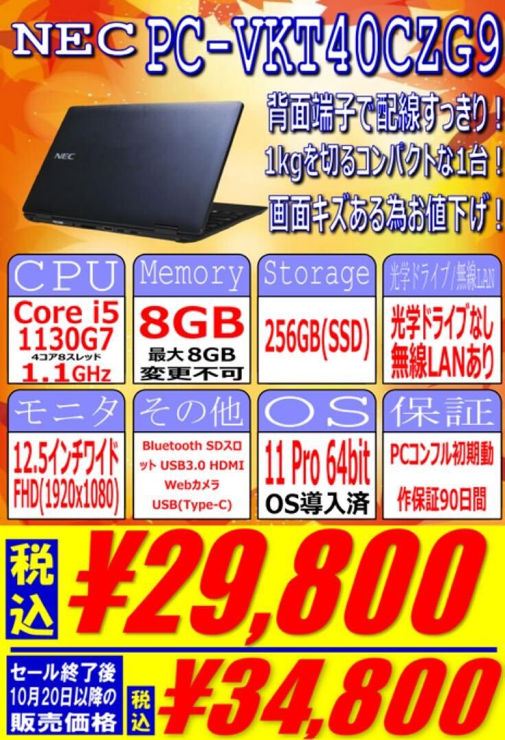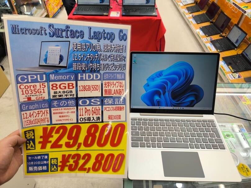 第10世代Core i5搭載、8GB / 128GB SSD、12.4インチワイドタッチパネル対応、Windows 11 proという構成で29,800円です。