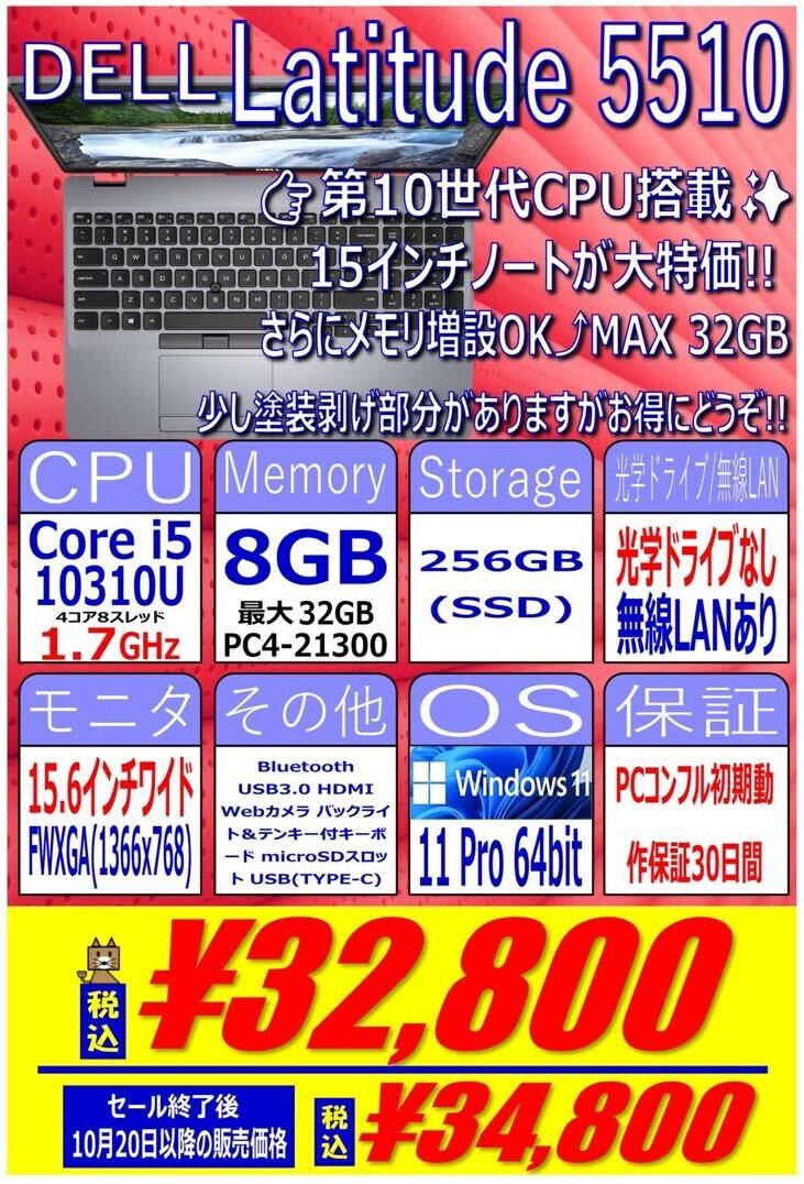 第10世代 Core i5搭載、8GB / 256GB SSD、12.1インチワイドWUXGA、Windows11 pro という構成で32,800円です。