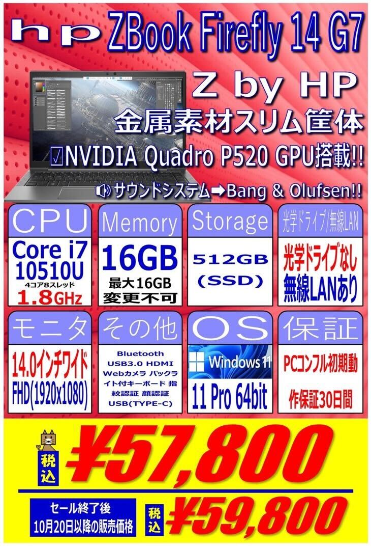 第10世代Core i7搭載、16GB / 512GB SSD、14インチワイドFHD、Windows 11 proという構成で57,800円です。