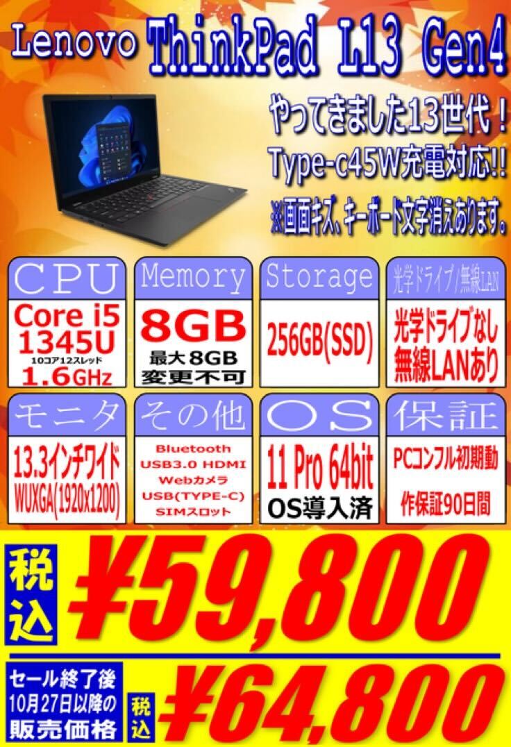Lenovo「ThinkPad L13 Gen4 」 税込59,800円