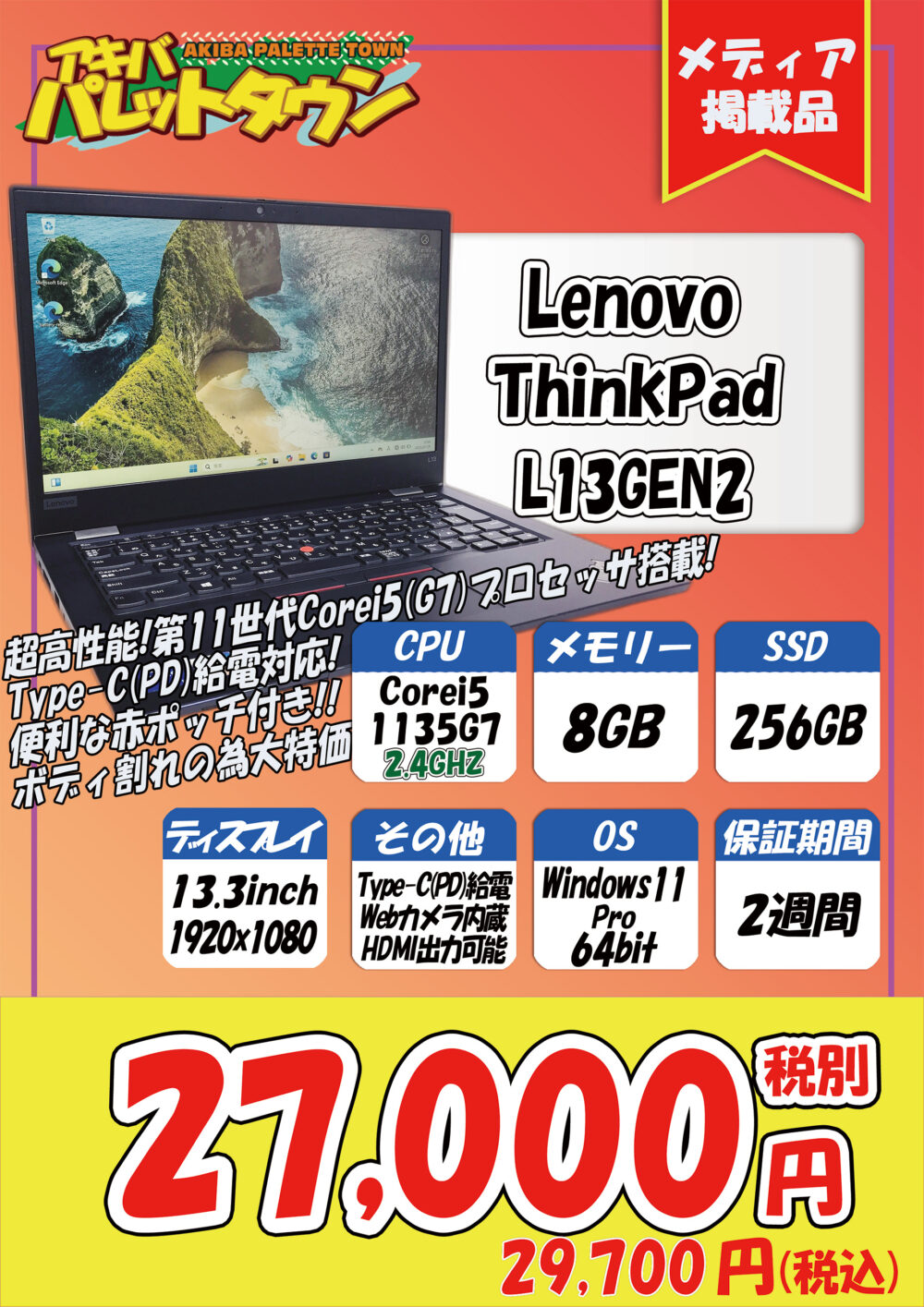 Lenovo「ThinkPad L13 Gen2」税込29,700円