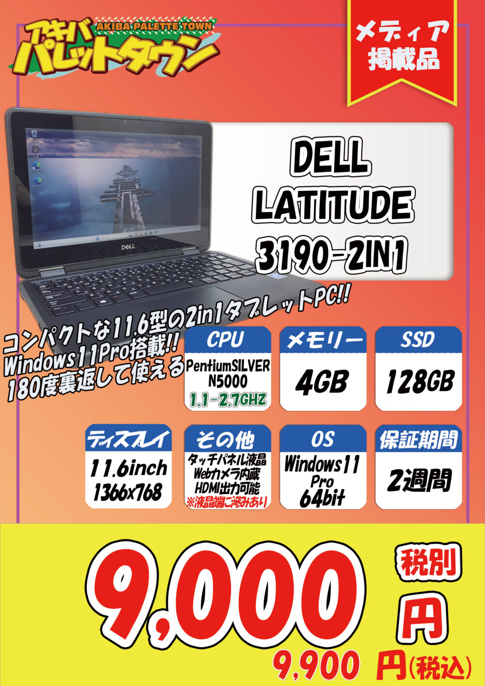 DELL 「Latitude 3190-2in1」 税込9,900円